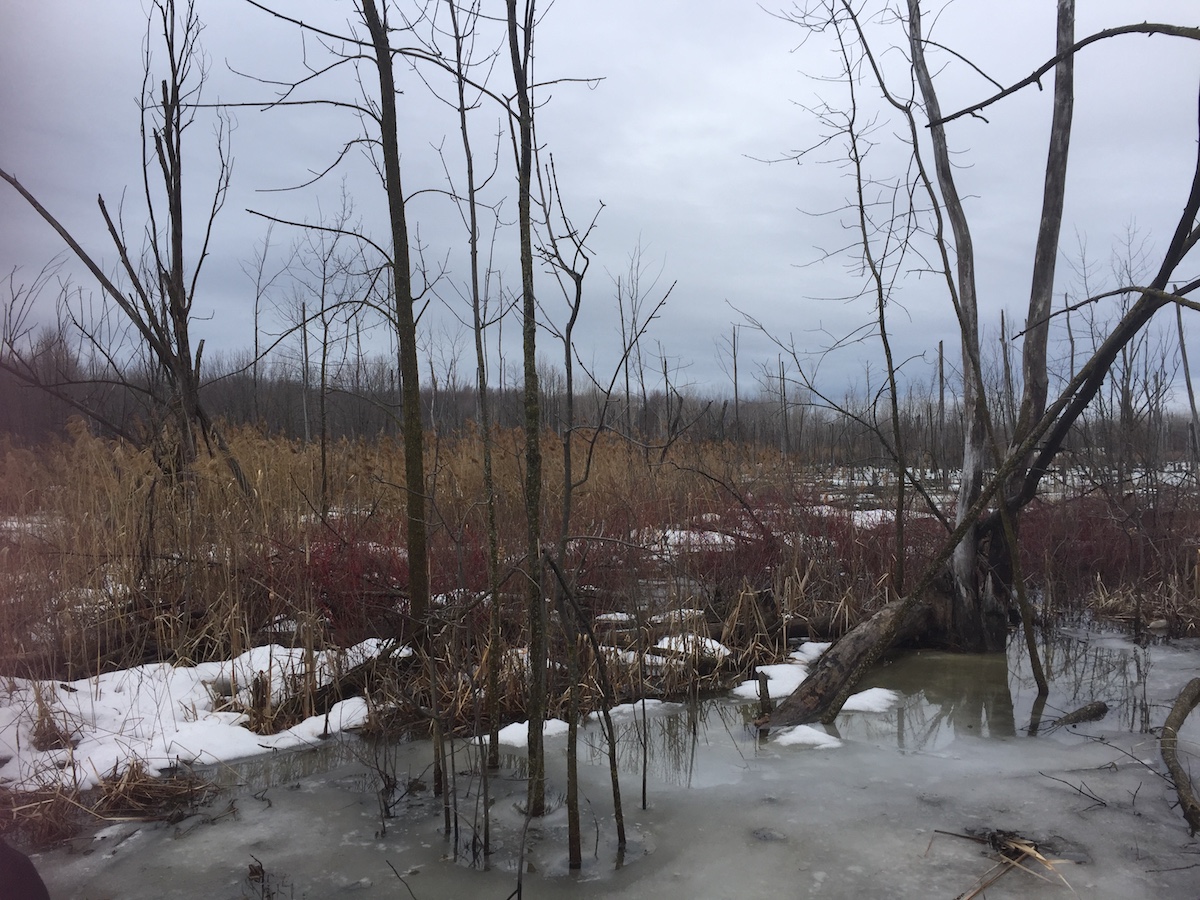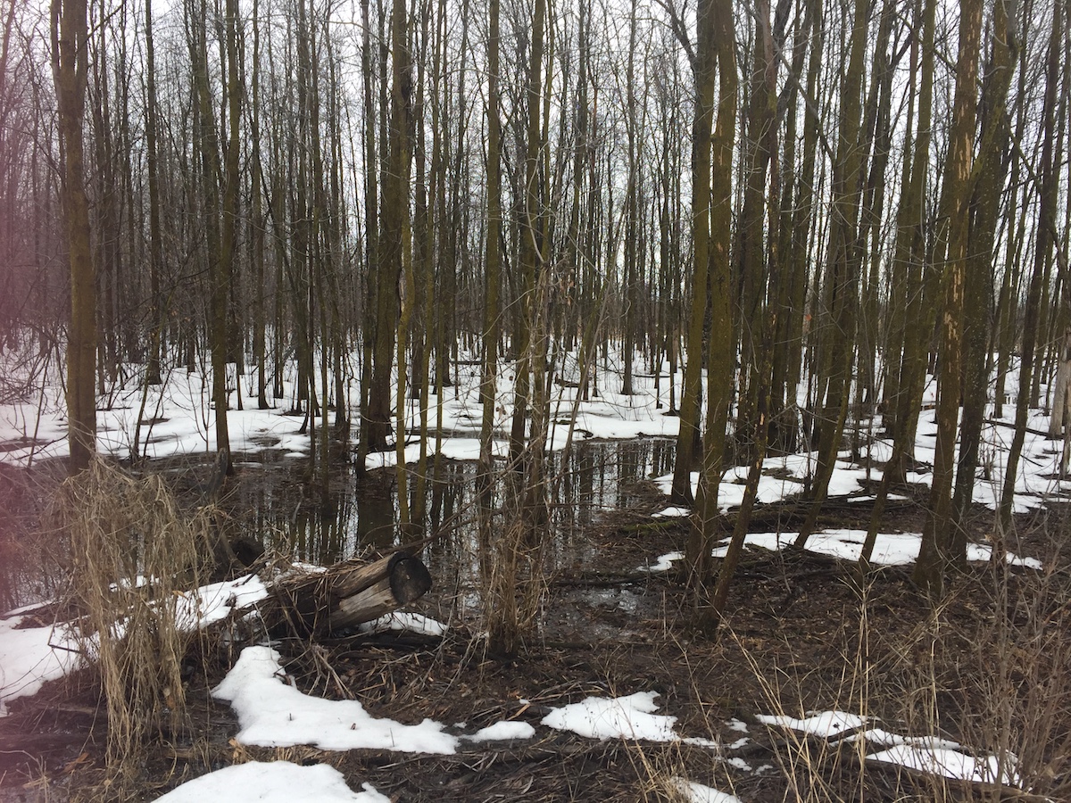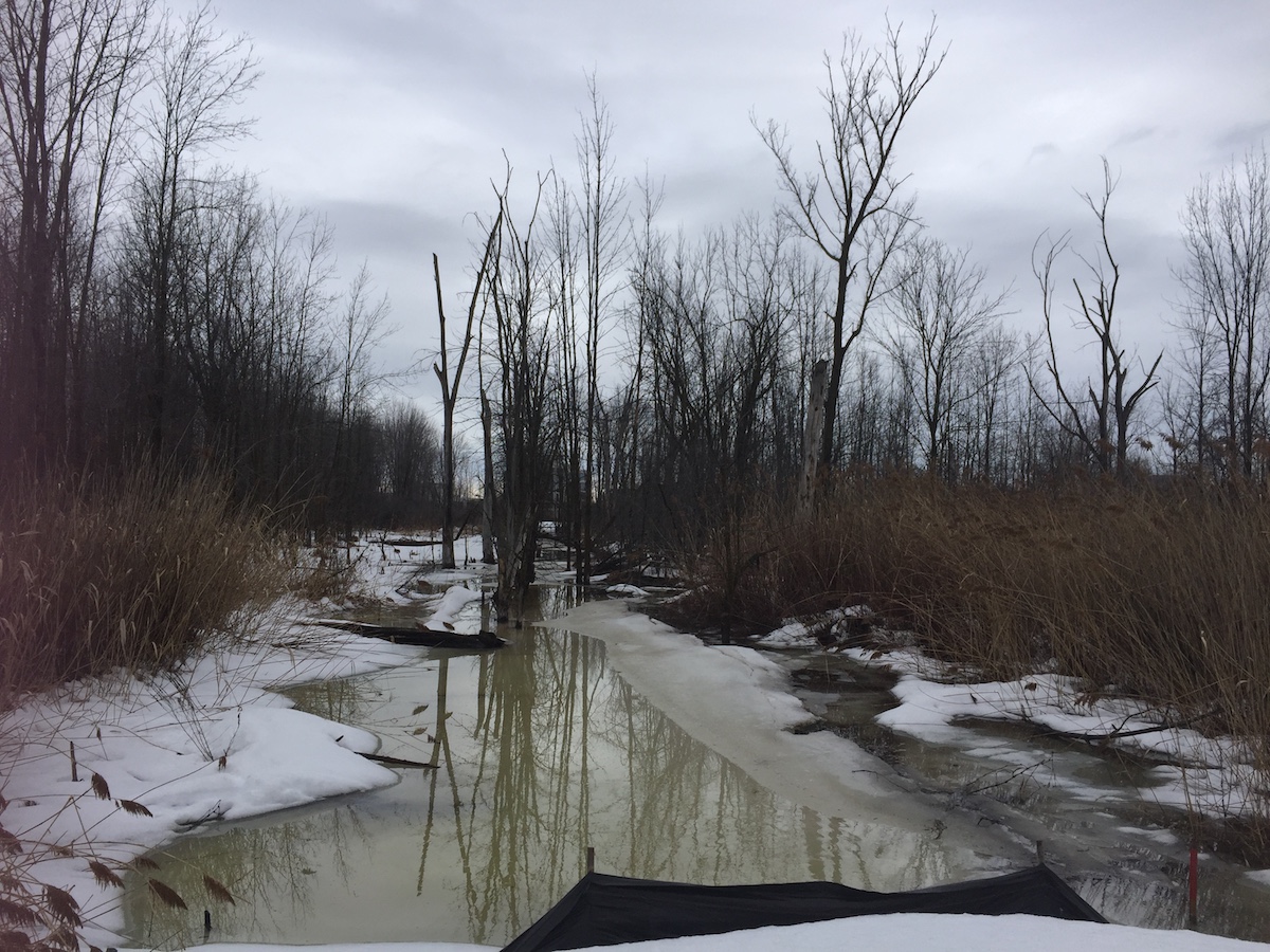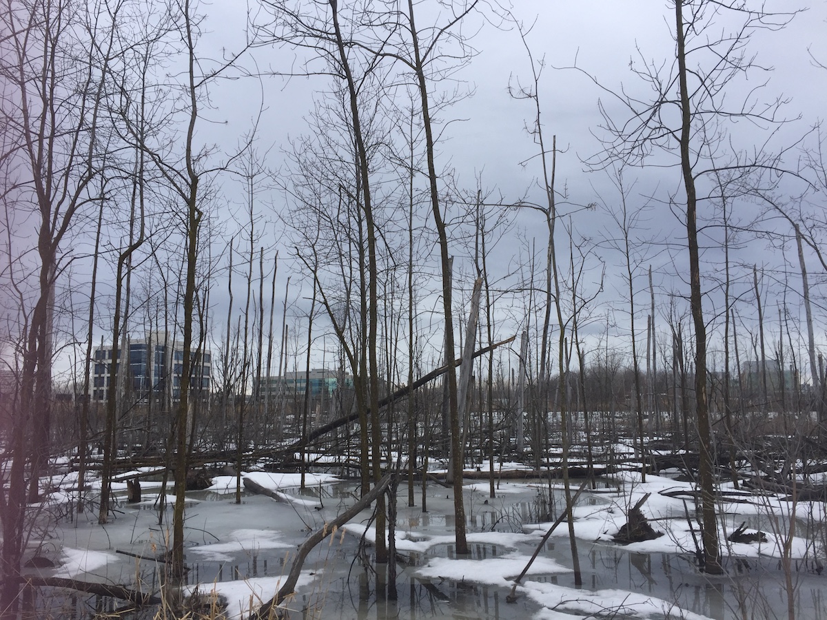 The Technoparc has a woods that have grown and a wetland ecosystem that has emerged since the land stopped being farmed 20-30 years ago. This is good; this is reverting back to nature. So on an island and region where there’s lots of pressure on green land – everything is being developed as if it were an imperative, when it’s not – this little peri-urban space bounded by the Trudeau Aeroport (airport) to the south and a half-developed office park to the north became what’s known as refugia.